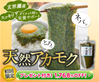 花粉症だけでなく美肌効果もあるというアカモクが年中購入できるなんて夢のような環境です。自分でとろみを出すまで刻むのはなかなか大変だと実感したからこそ、商品のススメは力が入ってしまいますね。ありがとうございます。